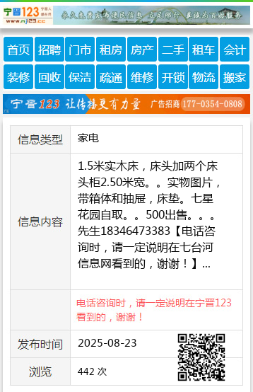 1.5米实木床,床头加两个床头柜2.50米宽。。实物图片,带箱体和抽屉,床垫。七星花园自取。。500出售。。。先生18346473383 【电话咨询时,请一定说明在七台河信息网看到的,谢谢!】 |