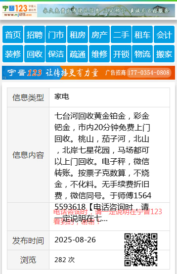 七台河回收黄金铂金,彩金钯金,市内20分钟免费上门回收。桃山,茄子河,北山,北岸七星花园,马场都可以上门回收。电子秤,微信转账。按票子克数算,不烧金,不化料。无手续费折旧费,微信同号。于师傅15645593618 【电话咨询时,请一定说明在七台河信息网看到的,谢谢!】 |