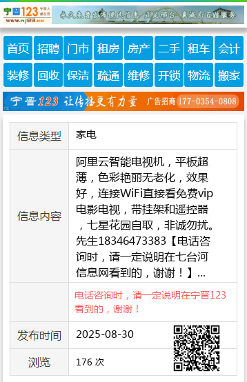 阿里云智能电视机,平板超薄,色彩艳丽无老化,效果好,连接WiFi直接看免费vip电影电视,带挂架和遥控器,七星花园自取,非诚勿扰。先生18346473383 【电话咨询时,请一定说明在七台河信息网看到的,谢谢!】 |