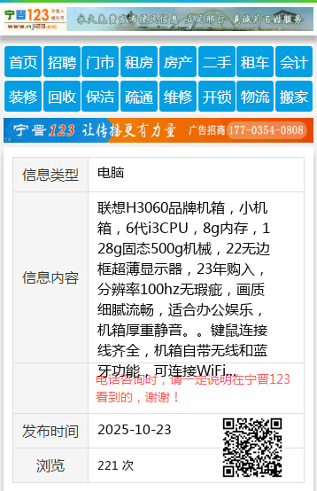 联想H3060品牌机箱,小机箱,6代i3CPU,8g内存,128g固态500g机械,22无边框超薄显示器,23年购入,分辨率100hz无瑕疵,画质细腻流畅,适合办公娱乐,机箱厚重静音。。键鼠连接线齐全,机箱自带无线和蓝牙功能,可连接WiFi不用插网线,自用机器,除机箱外壳轻微磕碰掉漆,其它无问题,非诚勿扰,本地自取。。。先生18346471781 【电话咨询时,请一定说明在七台河信息网看到的,谢谢!】 |