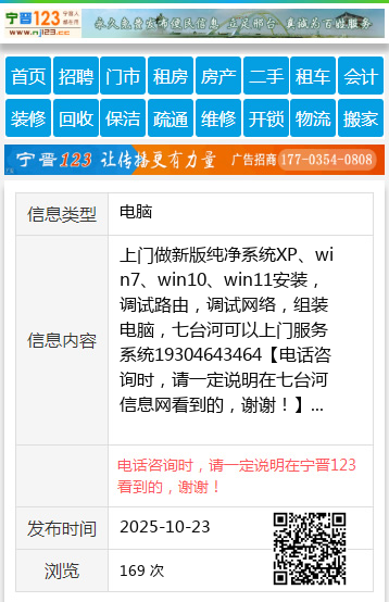上门做新版纯净系统XP、win7、win10、win11安装,调试路由,调试网络,组装电脑,七台河可以上门服务系统19304643464 【电话咨询时,请一定说明在七台河信息网看到的,谢谢!】 |