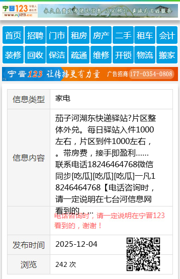 茄子河湖东快递驿站?片区整体外兑。每日驿站入件1000左右,片区到件1000左右,。带房费,接手即盈利……联系电话18246464768微信同步[吃瓜][吃瓜][吃瓜]一凡18246464768 【电话咨询时,请一定说明在七台河信息网看到的,谢谢!】 |