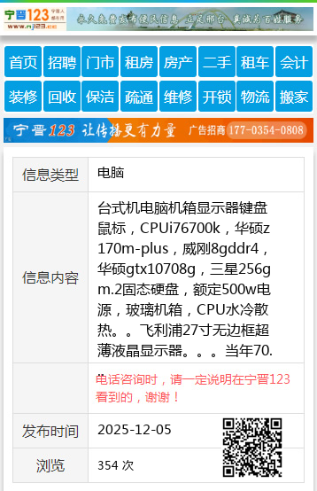 台式机电脑机箱显示器键盘鼠标,CPUi76700k,华硕z170m-plus,威刚8gddr4,华硕gtx10708g,三星256gm.2固态硬盘,额定500w电源,玻璃机箱,CPU水冷散热。。飞利浦27寸无边框超薄液晶显示器。。。当年7000多装的,正常使用中,无拆修,懂的来,个人闲着物品,本地自取试好拿走,非诚勿扰。。1800元全套白菜价出售,游戏办公无压力。。。先生18346473383 【电话咨询时,请一定说明在七台河信息网看到的,谢谢!】 |