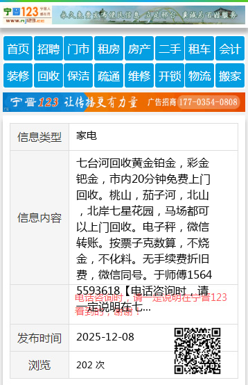 七台河回收黄金铂金,彩金钯金,市内20分钟免费上门回收。桃山,茄子河,北山,北岸七星花园,马场都可以上门回收。电子秤,微信转账。按票子克数算,不烧金,不化料。无手续费折旧费,微信同号。于师傅15645593618 【电话咨询时,请一定说明在七台河信息网看到的,谢谢!】 |