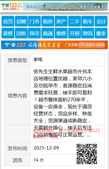 张先生生鲜水果超市外兑本店地理位置优越,紧邻六小及总院早市,客源稳定且消费需求旺盛,接手即可盈利!超市整体面积270余平,设备一应俱全,现处于满货经营状态,货品多样、种类齐全;货源渠道成熟稳定,无需额外操心,接手后专注门店销售即可正常运营。此外,楼上可放置六台麻将机,可拓展经营场景、增加额外收益,同时门店每年还有稳定陈列费收入。因个人多种原因,忍痛转让优质旺铺,欢迎有意向者实地考察洽谈!咨询电话:15561538882好朋友帮忙转发张先生15561538882 【电话咨询时,请一定说明在七台河信息网看到的,谢谢!】 |