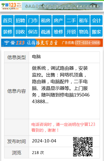 做系统,调试路由器,安装监控。出售:网络机顶盒,路由器,电脑配件,二手电脑、液晶显示器等。上门服务,随叫随到修电脑19504643888 【电话咨询时,请一定说明在七台河信息网看到的,谢谢!】 |