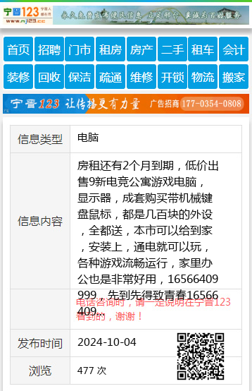 房租还有2个月到期,低价出售9新电竞公寓游戏电脑,显示器,成套购买带机械键盘鼠标,都是几百块的外设,全都送,本市可以给到家,安装上,通电就可以玩,各种游戏流畅运行,家里办公也是非常好用,16566409999,先到先得致青春16566409999 【电话咨询时,请一定说明在七台河信息网看到的,谢谢!】 |