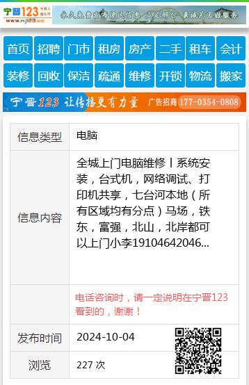 全城上门电脑维修丨系统安装,台式机,网络调试、打印机共享,七台河本地(所有区域均有分点)马场,铁东,富强,北山,北岸都可以上门小李19104642046 【电话咨询时,请一定说明在七台河信息网看到的,谢谢!】 |