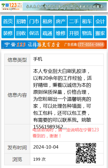 本人专业刮大白刷乳胶漆,以有20余年的工作经验,活好精细,秉着以诚信为本的原则保质保量,价格合理,为您粉刷出一个温馨明亮的家,可以处理各种墙面,可包工包料,还可以包工费,有需要的可以联系我。姚敏15561989362 【电话咨询时,请一定说明在七台河信息网看到的,谢谢!】 |