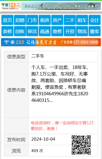个人车、一手出卖、18年车、跑7.1万公里、车况好、无事故、两套胎、因换轿车忍痛割爱。便宜急卖,有意者联系19104649966许先生18204640315 【电话咨询时,请一定说明在七台河信息网看到的,谢谢!】 |
