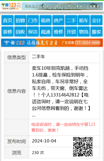 卖车10年别克凯越,手动挡1.6排量,检车保险到明年,私家自用,车况非常好,全车无伤,带天窗、倒车雷达!!个人13314642812 【电话咨询时,请一定说明在七台河信息网看到的,谢谢!】 |