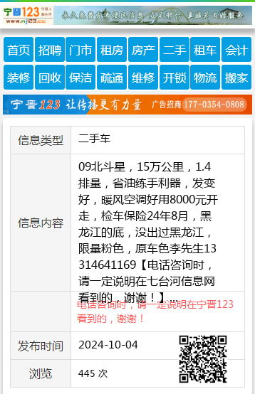 09北斗星,15万公里,1.4排量,省油练手利器,发变好,暖风空调好用8000元开走,检车保险24年8月,黑龙江的底,没出过黑龙江,限量粉色,原车色李先生13314641169 【电话咨询时,请一定说明在七台河信息网看到的,谢谢!】 |