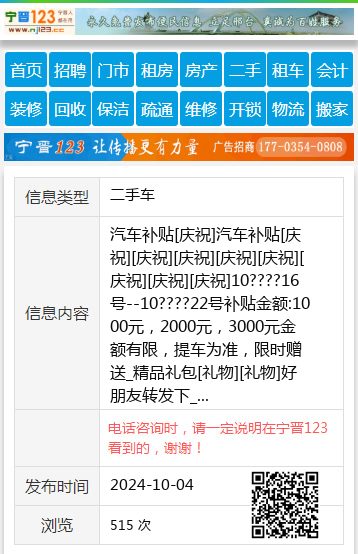 汽车补贴[庆祝]汽车补贴[庆祝][庆祝][庆祝][庆祝][庆祝][庆祝][庆祝][庆祝]10????16号--10????22号补贴金额:1000元,2000元,3000元金额有限,提车为准,限时赠送_精品礼包[礼物][礼物]好朋友转发下_谢谢咨询销售电话:151-4564-81880464-8859876董经理15145648188 【电话咨询时,请一定说明在七台河信息网看到的,谢谢!】 |