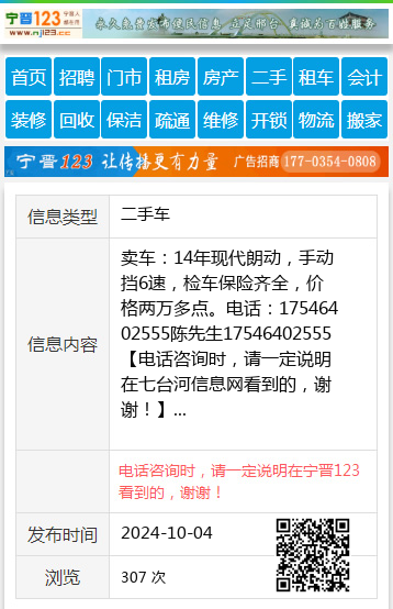 卖车:14年现代朗动,手动挡6速,检车保险齐全,价格两万多点。电话:17546402555陈先生17546402555 【电话咨询时,请一定说明在七台河信息网看到的,谢谢!】 |