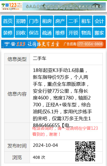 18年起亚K3手动1.6排量,新车指导价9万多,个人两手车,重点全车原版原漆,安全行驶7万公里,车身长度4600,宽度1780,轴距2700,正经A+级车型,综合油耗仅6.1升,家用代步练手的来吧,仅需3万多王先生18846466655 【电话咨询时,请一定说明在七台河信息网看到的,谢谢!】 |