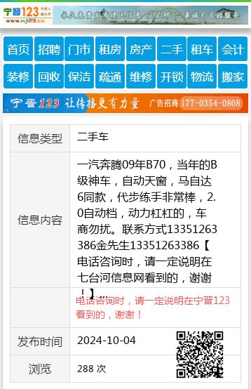 一汽奔腾09年B70,当年的B级神车,自动天窗,马自达6同款,代步练手非常棒,2.0自动档,动力杠杠的,车商勿扰。联系方式13351263386金先生13351263386 【电话咨询时,请一定说明在七台河信息网看到的,谢谢!】 |