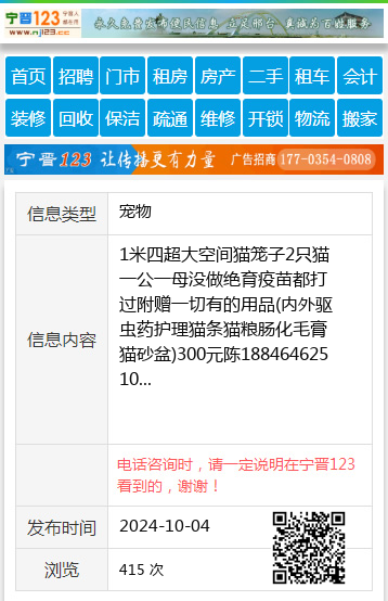 1米四超大空间猫笼子2只猫一公一母没做绝育疫苗都打过附赠一切有的用品(内外驱虫药护理猫条猫粮肠化毛膏猫砂盆)300元陈18846462510 【电话咨询时,请一定说明在七台河信息网看到的,谢谢!】 |