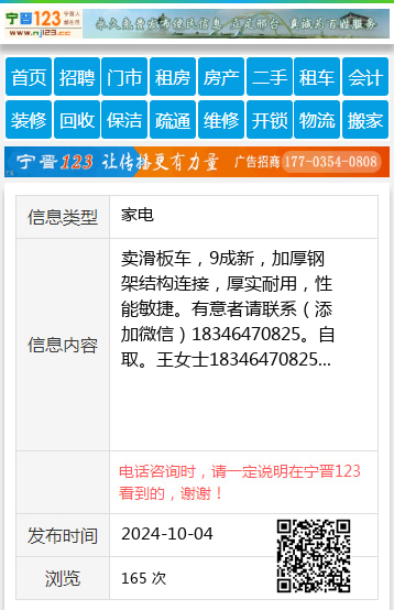 卖滑板车,9成新,加厚钢架结构连接,厚实耐用,性能敏捷。有意者请联系(添加微信)18346470825。自取。王女士18346470825 【电话咨询时,请一定说明在七台河信息网看到的,谢谢!】 |