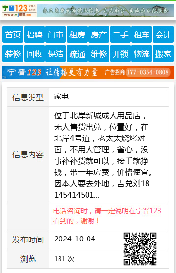 位于北岸新城成人用品店,无人售货出兑,位置好,在北岸4号道,老太太烧烤对面,不用人管理,省心,没事补补货就可以,接手就挣钱,带一年房费,价格便宜。因本人要去外地,吉兑刘18145414501 【电话咨询时,请一定说明在七台河信息网看到的,谢谢!】 |