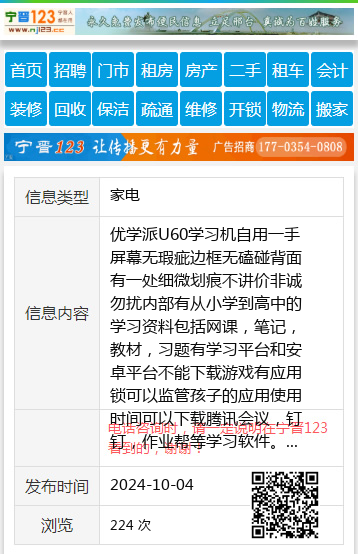 优学派U60学习机自用一手屏幕无瑕疵边框无磕碰背面有一处细微划痕不讲价非诚勿扰内部有从小学到高中的学习资料包括网课,笔记,教材,习题有学习平台和安卓平台不能下载游戏有应用锁可以监管孩子的应用使用时间可以下载腾讯会议,钉钉,作业帮等学习软件。不能打游戏!!!1800元便宜出。李先生13946547833 【电话咨询时,请一定说明在七台河信息网看到的,谢谢!】 |