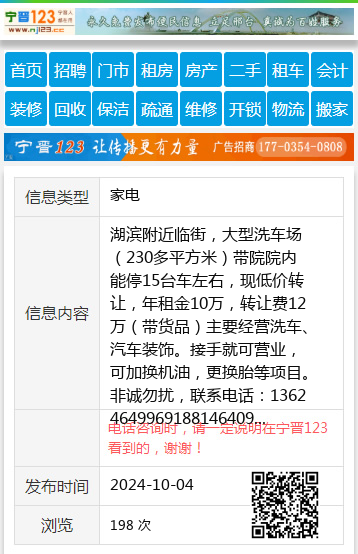湖滨附近临街,大型洗车场(230多平方米)带院院内能停15台车左右,现低价转让,年租金10万,转让费12万(带货品)主要经营洗车、汽车装饰。接手就可营业,可加换机油,更换胎等项目。非诚勿扰,联系电话:1362464996918814640999戴先生18814640999 【电话咨询时,请一定说明在七台河信息网看到的,谢谢!】 |