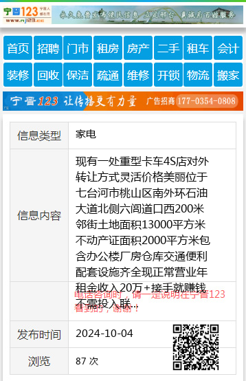 现有一处重型卡车4S店对外转让方式灵活价格美丽位于七台河市桃山区南外环石油大道北侧六闾道口西200米邻街土地面积13000平方米不动产证面积2000平方米包含办公楼厂房仓库交通便利配套设施齐全现正常营业年租金收入20万+接手就赚钱不需投入联系电话13304675617魏先生18724642166 【电话咨询时,请一定说明在七台河信息网看到的,谢谢!】 |