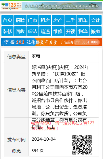 好消息[庆祝][庆祝]:2024年新举措:“扶持100家”旧衣回收百门店计划。:七台河利丰公司面向本市方圆200公里范围扶持百家门店,诚招各市县合作伙伴,你出场地,公司出资金,免费培训。你只负责收货,公司负责分拣结算!你有量公司有价格。(工资+利润)先到先得欢迎想创业的志同道合的人[跳跳][跳跳]加入利丰公司一起合作共赢!!!咨询电话:13945599685王总13946506087 【电话咨询时,请一定说明在七台河信息网看到的,谢谢!】 |