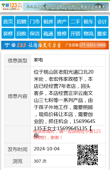 位于桃山区老阳光道口北20米处,老宏伟家政楼下,本店已经经营7年老店,回头客多,本店经营正宗云南文山三七粉等一系列产品,由于孩子外地工作,需要照顾,现低价转让本店,需要创业的,抓住机会,15699645135王女士15699645135 【电话咨询时,请一定说明在七台河信息网看到的,谢谢!】 |