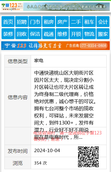 中通快递桃山区大明街片区因片区太大,现决定分割小片区转让也可大片区转让成为终身制二级代理商,价格绝对优惠,诚心想干的可议。拥有七台河整个市场的揽收权利,可驿站,未来发展空间大,到件1300+,发件有潜力,行业好不好不用说,现在是电商时代,所有人都网购,机会难得,口碑好,品牌大,货量高,有兴趣想当老板创业的拨打招商电话15645570345经理15645570345 【电话咨询时,请一定说明在七台河信息网看到的,谢谢!】 |