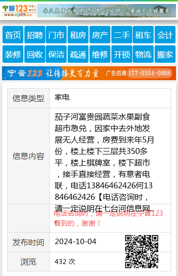 茄子河富贵园蔬菜水果副食超市急兑,因家中去外地发展无人经营,房费到来年5月份,楼上楼下三层共350多平,楼上棋牌室,楼下超市,接手直接经营,有意者电联,电话13846462426何13846462426 【电话咨询时,请一定说明在七台河信息网看到的,谢谢!】 |