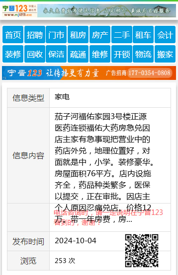 茄子河福佑家园3号楼正源医药连锁福佑大药房急兑因店主家有急事现把营业中的药店外兑,地理位置好,对面就是中,小学。装修豪华。房屋面积76平方。店内设施齐全,药品种类繁多,医保以提交,正在审批。因店主个人原因忍痛兑店。价格12万。带一年房费,房费一年2万联系人刘丽13284920867微信同步。好朋友们帮我转发,感谢刘丽13284920867 【电话咨询时,请一定说明在七台河信息网看到的,谢谢!】 |