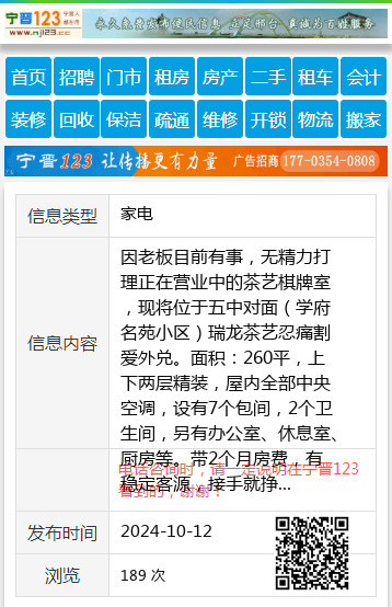 因老板目前有事,无精力打理正在营业中的茶艺棋牌室,现将位于五中对面(学府名苑小区)瑞龙茶艺忍痛割爱外兑。面积:260平,上下两层精装,屋内全部中央空调,设有7个包间,2个卫生间,另有办公室、休息室、厨房等。带2个月房费,有稳定客源,接手就挣钱,非常勿扰!有诚意者请联系.电话:18846988010孙19104648111 【电话咨询时,请一定说明在七台河信息网看到的,谢谢!】 |