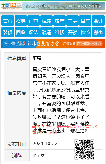 真皮三组沙发俩小一大,墨绿颜色,旁边没人,因家里常年不在家,嗯,没有人住,所以说沙发沙发质量非常好,有需要的嗯,可以来看一,有需要的可以联系我,上面有电话嗯,便宜出售。哎呀哪去了?这也说不了了呃,在这呢嗯嗯,买时候这沙发是一万出头,现在给800就卖。唐女士13946581204 【电话咨询时,请一定说明在七台河信息网看到的,谢谢!】 |