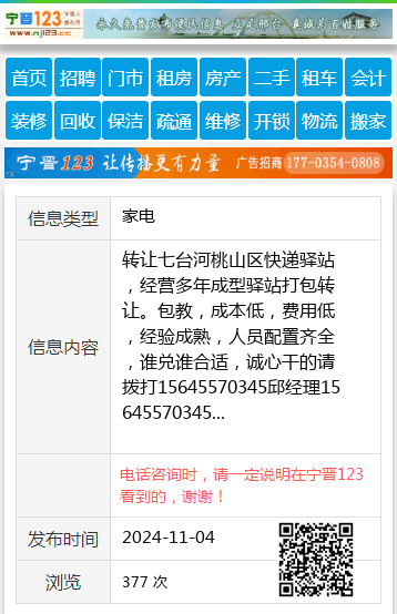 转让七台河桃山区快递驿站,经营多年成型驿站打包转让。包教,成本低,费用低,经验成熟,人员配置齐全,谁兑谁合适,诚心干的请拨打15645570345邱经理15645570345 【电话咨询时,请一定说明在七台河信息网看到的,谢谢!】 |