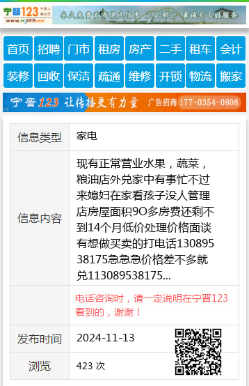 现有正常营业水果,蔬菜,粮油店外兑家中有事忙不过来媳妇在家看孩子没人管理店房屋面积9O多房费还剩不到14个月低价处理价格面谈有想做买卖的打电话13089538175急急急价格差不多就兑113089538175 【电话咨询时,请一定说明在七台河信息网看到的,谢谢!】 |