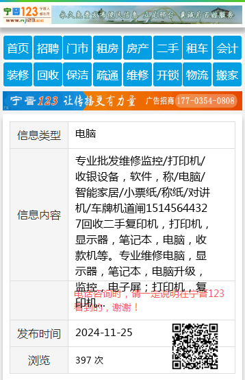 专业批发维修监控/打印机/收银设备,软件,称/电脑/智能家居/小票纸/称纸/对讲机/车牌机道闸15145644327回收二手复印机,打印机,显示器,笔记本,电脑,收款机等。专业维修电脑,显示器,笔记本,电脑升级,监控,电子屏;打印机,复印机,各行业收银软件,商超,餐饮等收银设备;专业卖各行业收银软件,收银机,小票机打印机,点菜宝,对讲机,收银蓝牙音箱;碳粉,墨水,硒鼓,墨盒;网线,路由器,监控,小票纸,称纸;蓝牙音响;电子秤,商超餐饮收银设备,显示器及电视挂架;承接弱电工程及品牌售后,专业熔纤及工程布线,维护。15145644327先生15145644327 【电话咨询时,请一定说明在七台河信息网看到的,谢谢!】 |
