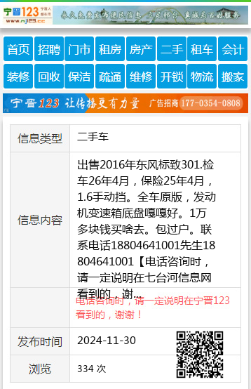 出售2016年东风标致301.检车26年4月,保险25年4月,1.6手动挡。全车原版,发动机变速箱底盘嘎嘎好。1万多块钱买啥去。包过户。联系电话18804641001先生18804641001 【电话咨询时,请一定说明在七台河信息网看到的,谢谢!】 |