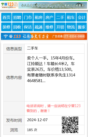 卖个人一手。15年4月份车。江铃顺达!车箱长4米2。车实表26万。车价格13,500。有意者随时联系李先生13144648581 【电话咨询时,请一定说明在七台河信息网看到的,谢谢!】 |