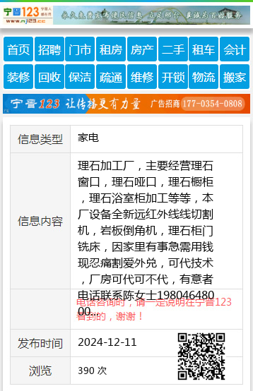 理石加工厂,主要经营理石窗口,理石哑口,理石橱柜,理石浴室柜加工等等,本厂设备全新远红外线线切割机,岩板倒角机,理石柜门铣床,因家里有事急需用钱现忍痛割爱外兑,可代技术,厂房可代可不代,有意者电话联系陈女士19804648000 【电话咨询时,请一定说明在七台河信息网看到的,谢谢!】 |
