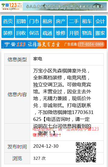 万宝小区先森棋牌室外兑,全新高档装修,电竞风格,独立空调卫浴。可做电竞宾馆。未营业过,因业主去外地,无精力兼顾,现低价外兑,非诚匆扰。打电话联系,不加微信棋牌馆17703631625 【电话咨询时,请一定说明在七台河信息网看到的,谢谢!】 |
