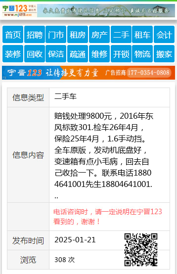 赔钱处理9800元,2016年东风标致301.检车26年4月,保险25年4月,1.6手动挡。全车原版,发动机底盘好,变速箱有点小毛病,回去自己收拾一下。联系电话18804641001先生18804641001 【电话咨询时,请一定说明在七台河信息网看到的,谢谢!】 |