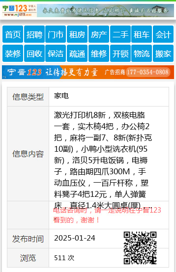 激光打印机8新,双核电胳一套,实木椅4把,办公椅2把,麻将一副7、8新(新扑克10副),小鸭小型诜衣机(95新),洛贝5升电饭锅,电褥子,路由期四爪300M,手动血压仪,一百斤杆称,塑料凳子4把12元,单人弹簧床,直径1.4米大圆桌(厚),大中小,台式机硬盘120G和500G,号花盆多个,宠物兜,精品工具,2米x1米椰棕床垫,井下工人用的自救器和矿灯,全新工作服一套、秋衣秋裤2套、新洛贝饭锅内胆4升和5升,新电子称,1寸热熔件(热熔门等),总院开的进口药替格瑞洛十几盒有收据日期到27年20元1盒王13946505267 【电话咨询时,请一定说明在七台河信息网看到的,谢谢!】 |