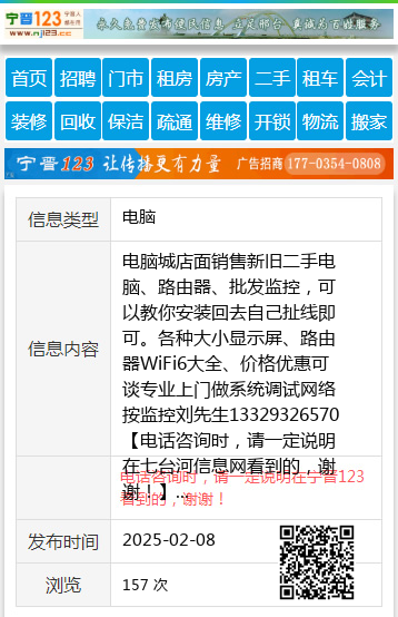 电脑城店面销售新旧二手电脑、路由器、批发监控,可以教你安装回去自己扯线即可。各种大小显示屏、路由器WiFi6大全、价格优惠可谈专业上门做系统调试网络按监控刘先生13329326570 【电话咨询时,请一定说明在七台河信息网看到的,谢谢!】 |