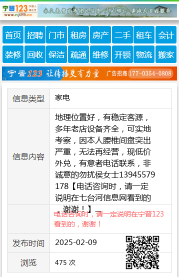 地理位置好,有稳定客源,多年老店设备齐全,可实地考察,因本人腰椎间盘突出严重,无法再经营,现低价外兑,有意者电话联系,非诚意的勿扰侯女士13945579178 【电话咨询时,请一定说明在七台河信息网看到的,谢谢!】 |