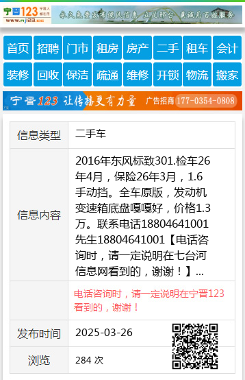 2016年东风标致301.检车26年4月,保险26年3月,1.6手动挡。全车原版,发动机变速箱底盘嘎嘎好,价格1.3万。联系电话18804641001先生18804641001 【电话咨询时,请一定说明在七台河信息网看到的,谢谢!】 |