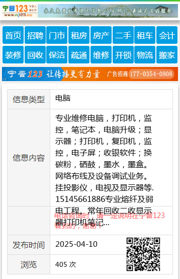 专业维修电脑,打印机,监控,笔记本,电脑升级;显示器;打印机,复印机,监控,电子屏;收银软件;换碳粉,硒鼓,墨水,墨盒。网络布线及设备调试业务。挂投影仪,电视及显示器等.15145661886专业熔纤及弱电工程。常年回收二收显示器打印机笔记本收款机等;专业熔纤及弱电工程.15145661886先生15145661886 【电话咨询时,请一定说明在七台河信息网看到的,谢谢!】 |