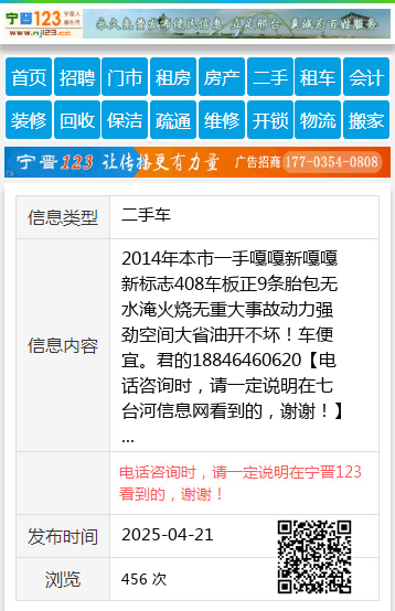 2014年本市一手嘎嘎新嘎嘎新标志408车板正9条胎包无水淹火烧无重大事故动力强劲空间大省油开不坏!车便宜。君的18846460620 【电话咨询时,请一定说明在七台河信息网看到的,谢谢!】 |