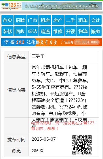 常年带司机租车!包车!频车!轿车。越野车。七坐商务车。大巴!中巴!急救车。5-55坐车应有尽有。????接机送机。长短途包车。❤全程高速安全舒适!????23年驾龄老司机。????24小时随时有车❤急用车您找我。个人租车!商务租车!上坟用车!应有尽有。用车您找我!电话微信13069852223康先生13069852223 【电话咨询时,请一定说明在七台河信息网看到的,谢谢!】 |