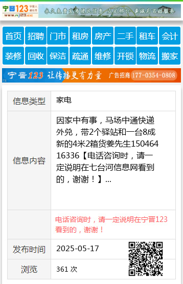 免责声明:本栏目信息由网友自行发布,七台河信息网不承担任何责任!提高警惕,谨防诈骗!做推广、做信息置顶!请加七台河信息网客服微信:cnxingtai