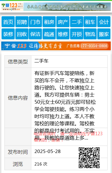 有证新手汽车驾驶陪练,新买的车不会开,不敢独立上路行驶的。让您快速独立上道。我方可提供车辆:男士50元女士60元百元即可轻松学会驾驶技能。练习两个小时均可独力上道。本人不教驾校的理论等课程。驾校教的都是应付考试用的。不实用。我教的是道路上多年积攒的实际驾驶经验。绝对管用。耐心!细节!决定一切!教练提供手动挡车型。按小时收费有证陪练预约电话:13069852223康教练康教练13069852223 【电话咨询时,请一定说明在七台河信息网看到的,谢谢!】 |